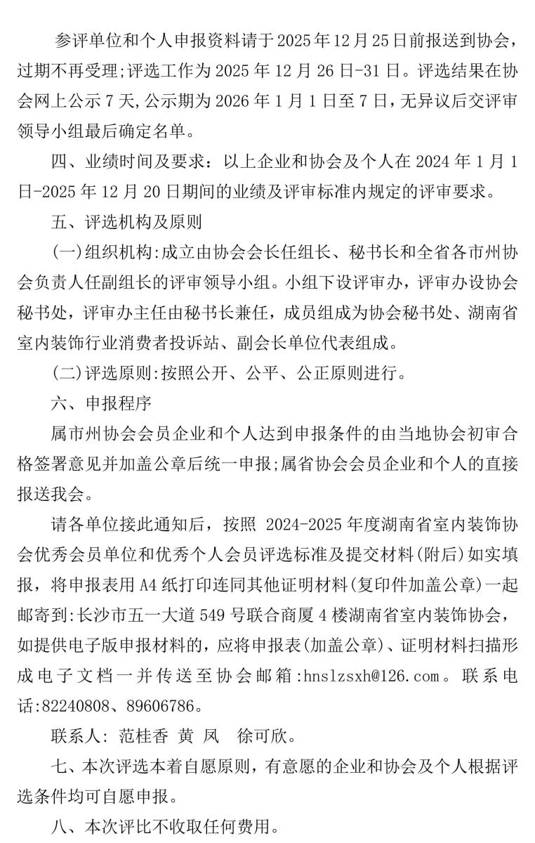 关于评选2024-2025年湖南省室内装饰协会优秀会员企业和个会员的通知