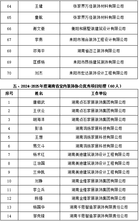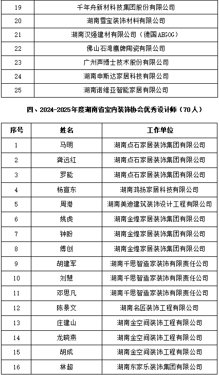 2024-2025年度湖南省室内装饰协会优秀会员单位和优秀个人获奖名单公示