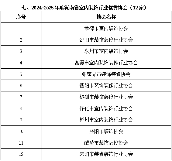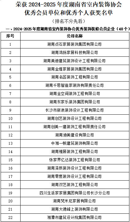 为在全行业树立标杆,引领企业更好地为消费者提供优质服务,促进行业高质量发展。我会于今年11月启动了评选2024-2025年度湖南省室内装饰协会优秀会员单位和优秀个人活动,得到了全行业的高度关注和积极参与,通过申报、评审等程序,获奖名单已经产生,现予公布(名单附后),公示期为2026年1月5日至9日。