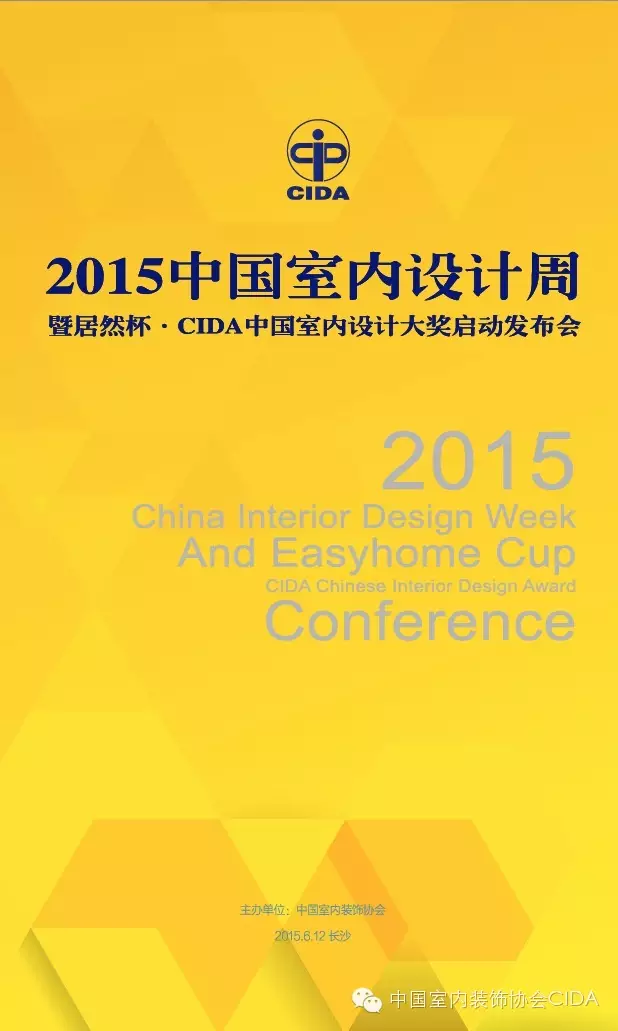 由中国室内装饰协会主办的“2015中国室内设计周暨居然杯·CIDA中国室内设计大奖启动发布会”定于6月12日下午在湖南华天大酒店华天会堂举行,至此2015中国室内设计周正式启动!