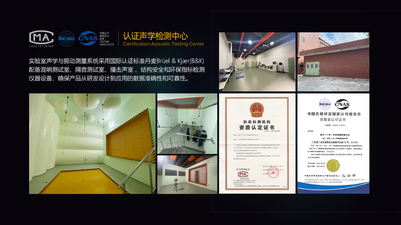 技术团队与国内外多所高校设立对口科研课题,华南理工大学、暨南大学、广州大学、英国诺汀汉大学等研究生实习基地。公司总部五百余人,技术工程师六十余人,其中博士、硕士学历近二十人。在工业和建筑的噪声与振动领域创新成果显著,拥有国内外200余项技术专利,荣获国家级高新技术企业,亚洲唯一入选德国EASE声学软件数据库(国际权威设计与检测软件)的企业,成功挤身国际声学标准参考的领军企业。 拥有自主建立国标声学检测中心,先进的混响测试室、隔音测试室、撞击声室、安全和环保指标检测仪器设备,确保产品从研发设计到应用的数据准确性和可靠性。工信部授予科技高新企业和多项国家标准起草参与企业。