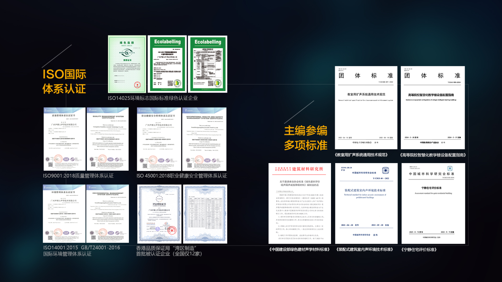 声博士创始于2008年,专注于噪声控制技术及产品研发制造。 公司业务覆盖建筑、汽车、船舶、高铁、地铁、军工等领域,是番禺区重点护持企业和重点纳税贡献企业。声博士公司在声学领域突破多项科研成果,获国家高新技术企业,国家级专精特新“小巨人”企业,广东省专精特新企业,广州市两高四新企业,番禺区民营科技术创新百强企业,广州高科技20强企业(排第16位)、2020年粤港澳大湾区最具创新力公司50强、2023年获粤港澳大湾区战略性新兴产业领航企业,香港品质保证司“湾区制造”认证等荣誉称号。