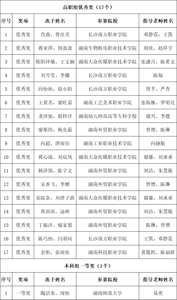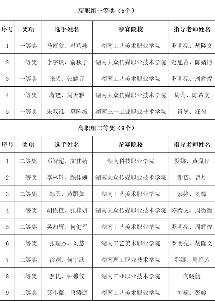 2025年全国院校室内设计技能大赛(湖南省选拔赛)获奖名单
