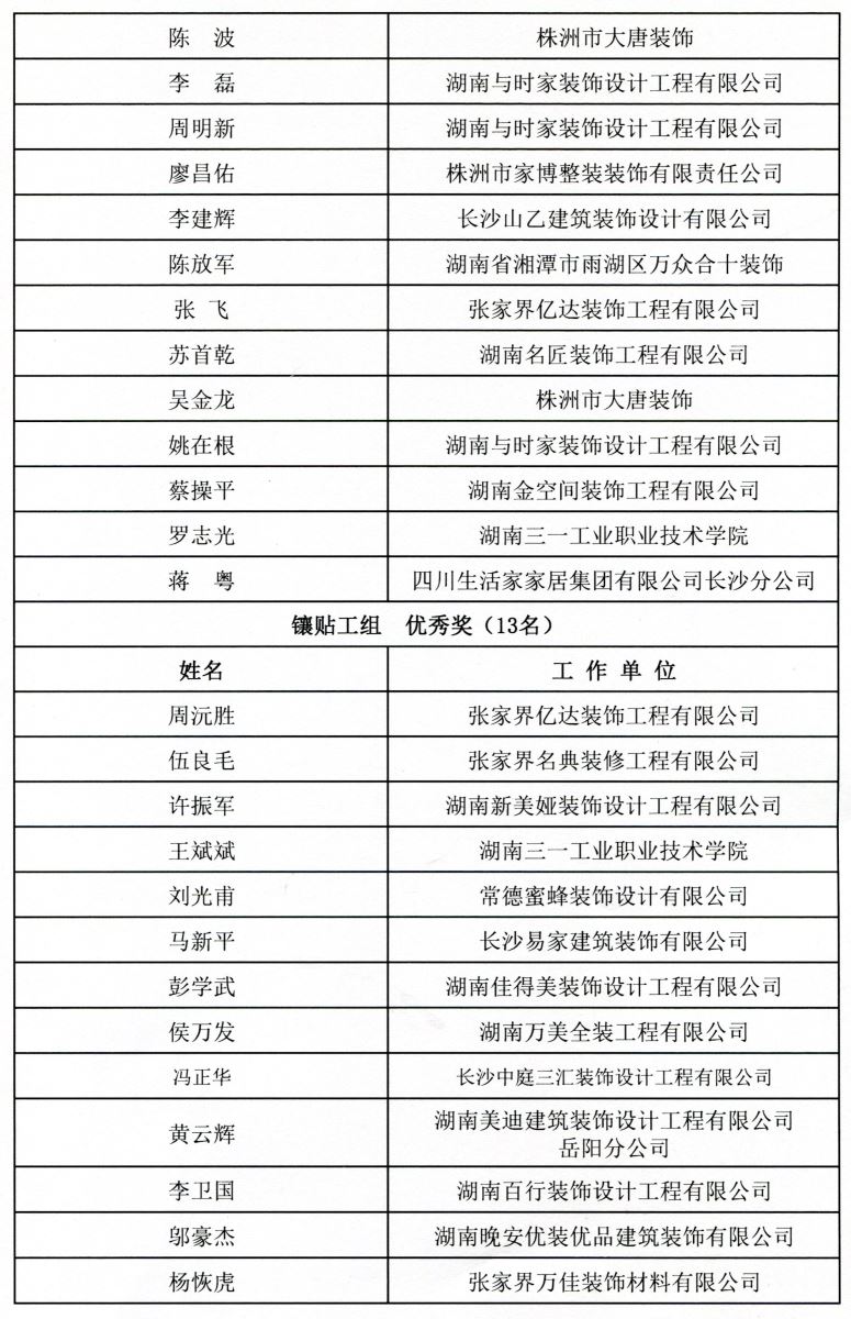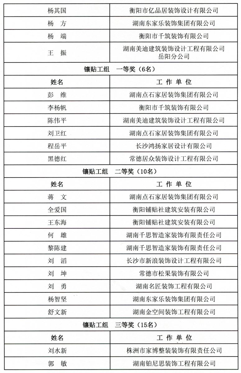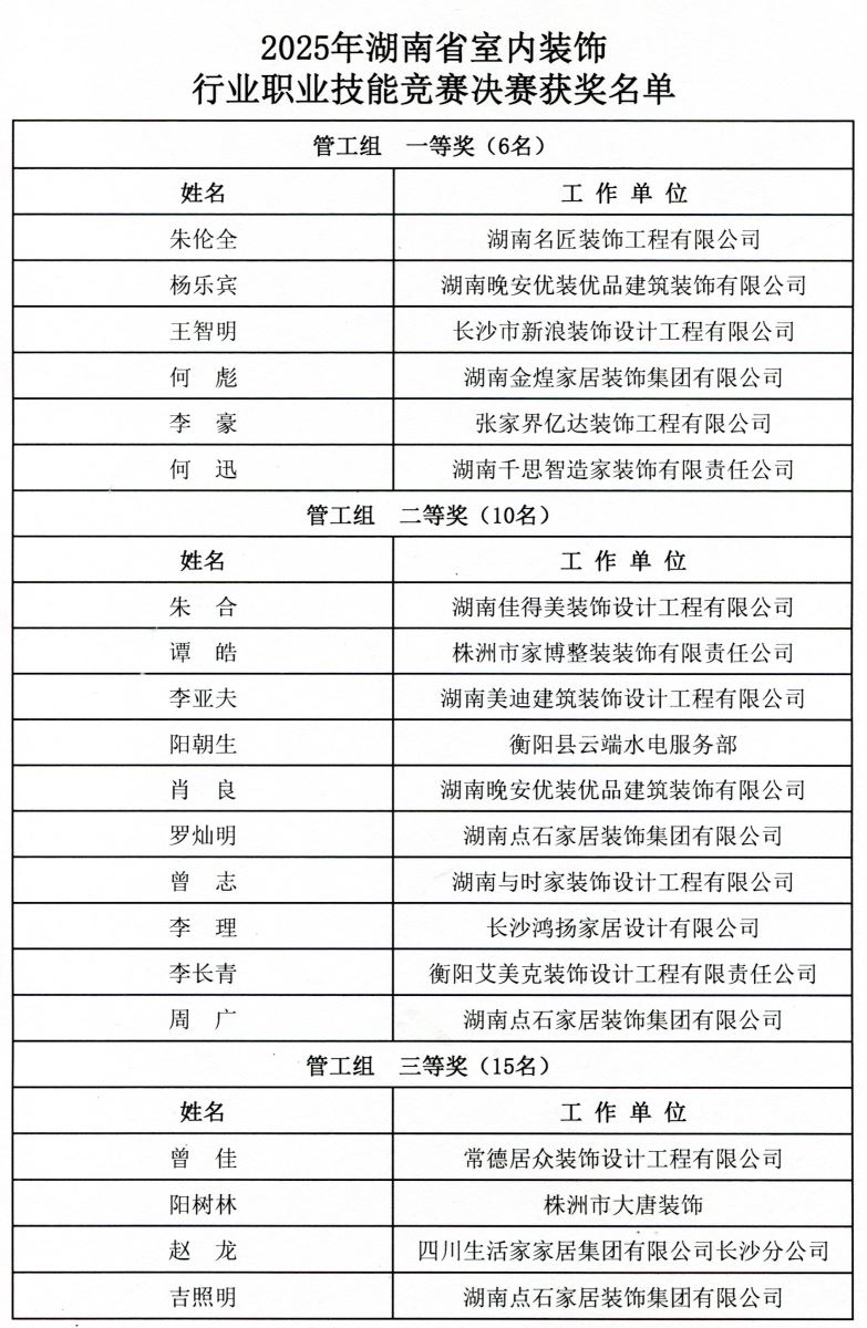 2025年湖南省室内装饰行业职业技能竞赛决赛获奖名单