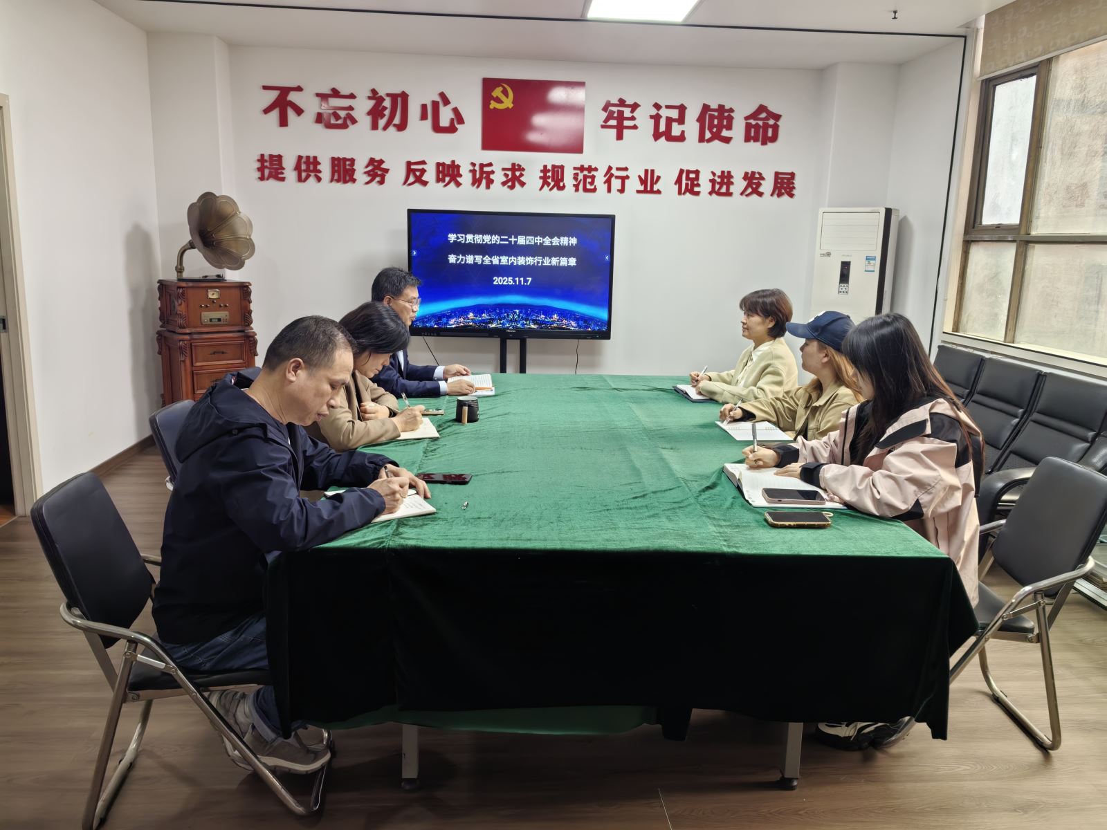 深入学习党的二十届四中全会精神,推进行业高质量发展,为建设美丽中国和提升人民生活品质作出装饰行业的贡献。协会11月7日传达了省工信厅机关党委在芷江举办培训班的学习精神,并对党的二十届四中全会提出的十五五规划进行了研读和座谈。11月20日在协会五届三次常务理事会上进行了二十届四中全会、十五五规划的党课讲座。