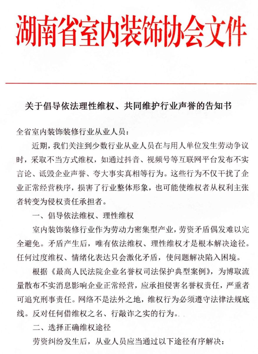 关于倡导依法理性维权、共同维护行业声誉的告知书