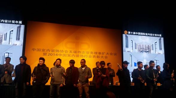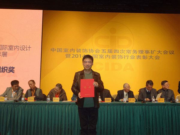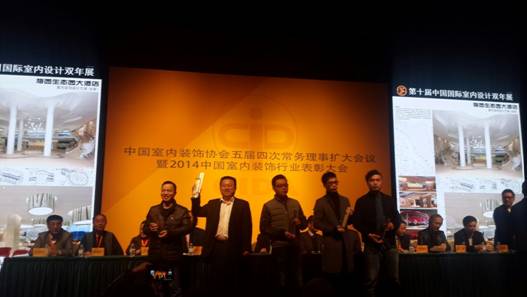 2014年11月26日上午,“第十届中国国际室内设计双年展颁奖大会”在国家博物馆隆重举行,中国轻工业联合会副会长陶小年、中国室内装饰协会会长刘珝、名誉会长龚权、副会长兼秘书长张丽,中国家具协会理事长朱长岭,同济大学建筑城规学院来增祥教授,清华大学美术学院郑曙旸教授,著名设计师梁志天等领导和嘉宾出席了颁奖盛典并为获奖单位和个人颁发了奖杯和证书。湖南省室内装饰协会会长姚保林率湖南获奖单位和个人参加了本次颁奖大会。